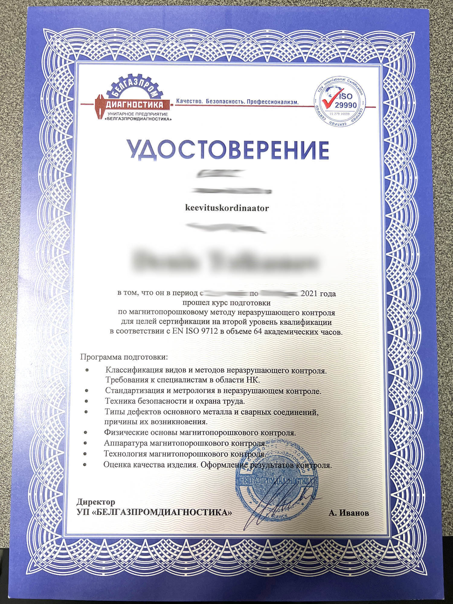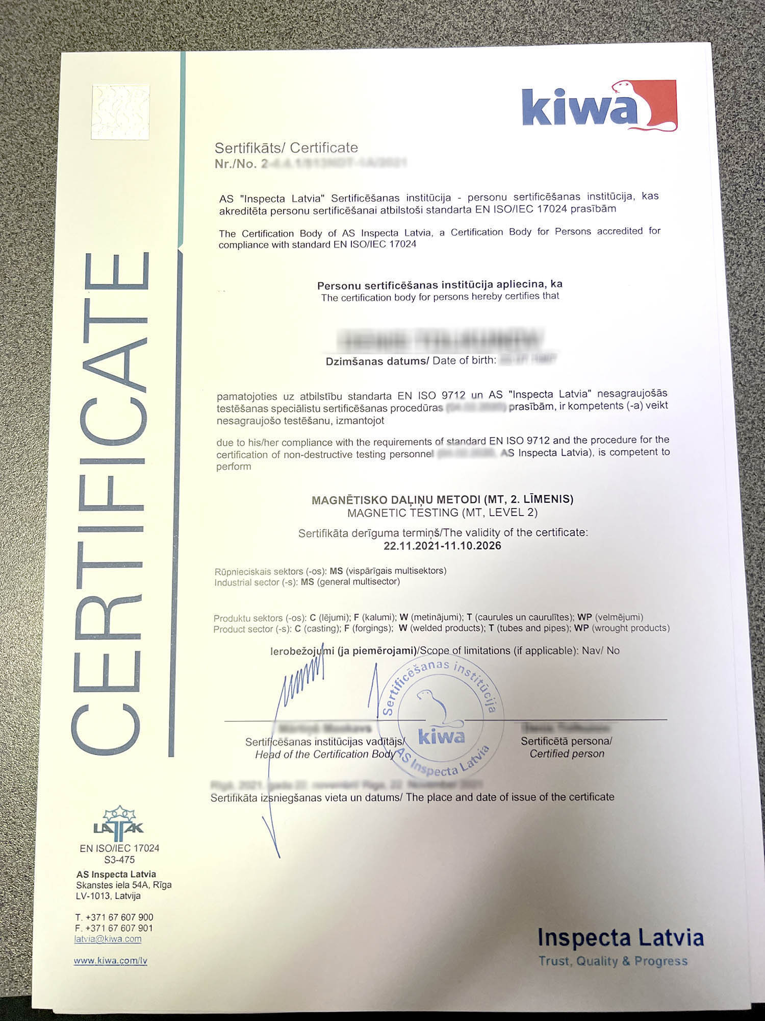 In quality control, we apply the principles of nondestructive testing (NDT). Visual testing (VT), magnetic-particle testing (MT).