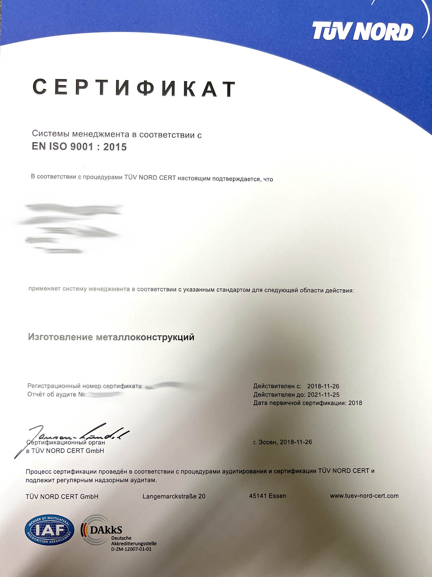 - ISO 14001:2015, ISO 3834-3:2006, EN 1090-1, EN 1090-2 and EN 1090-3 for a high quality.